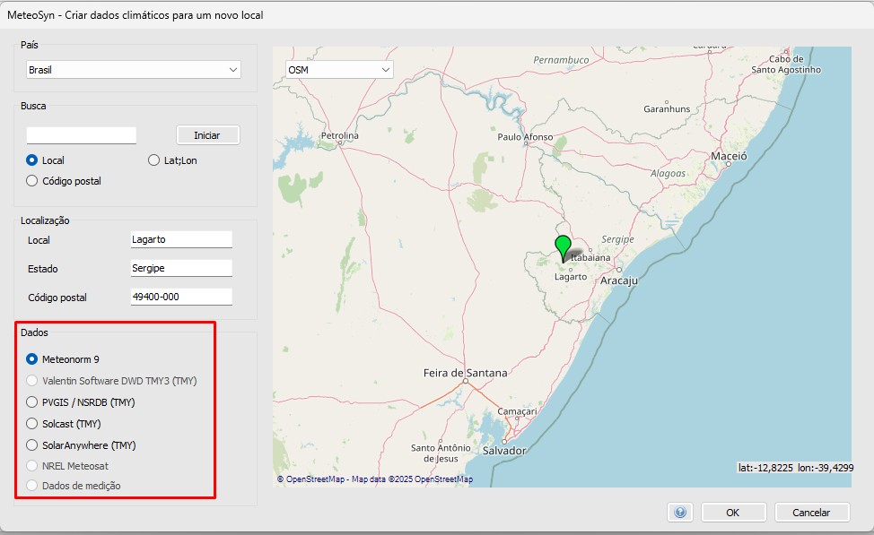 Diferentes fontes meteorológicas sempre trazem diferentes valores, ainda mais num país como o nosso que não conta com uma estrutura boa de medição em solo. As novas fontes foram introduzidas ao PV*SOL justamente para oferecer uma variedade maior que permite a você escolher a melhor de acordo com as suas preferências: