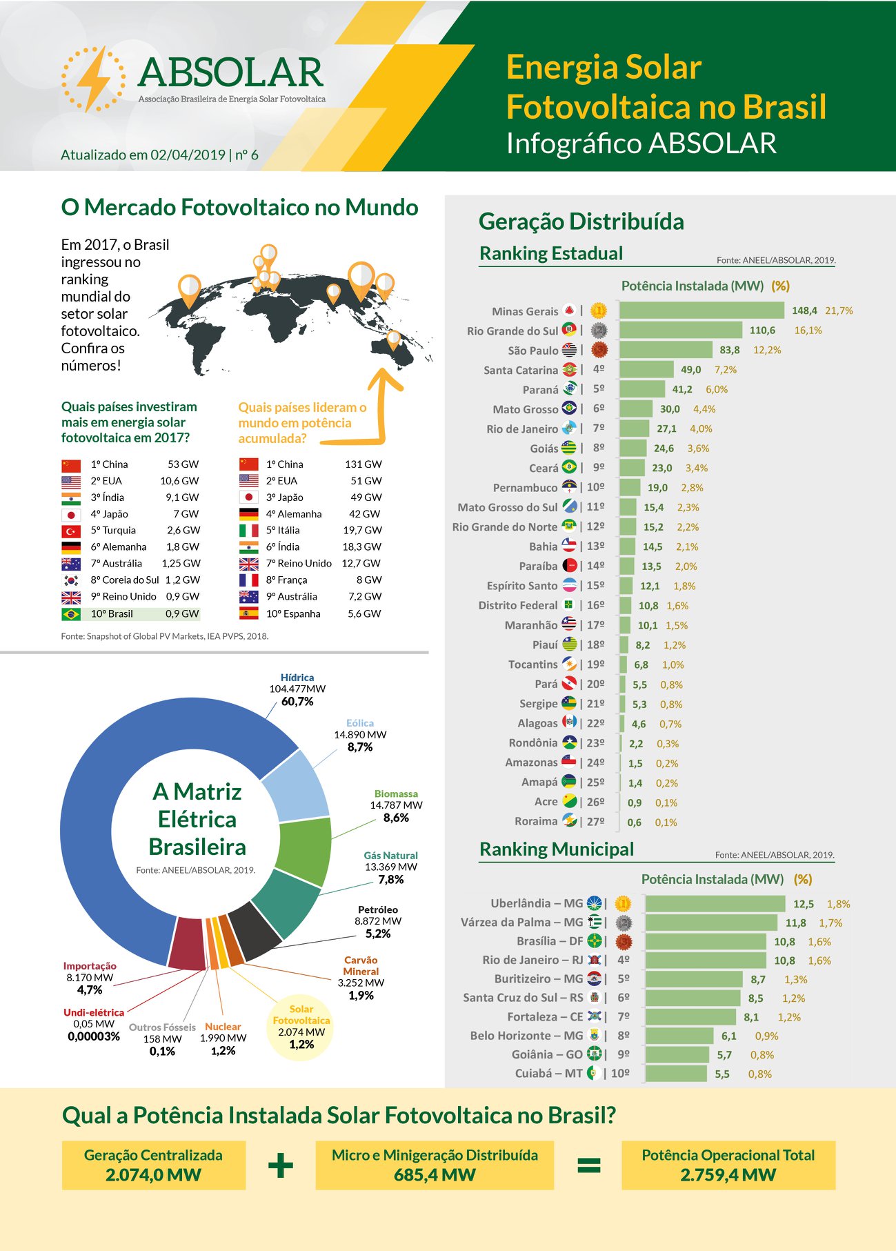 Energia solar fotovoltaica no Brasil - Infográfico de Abril 2019