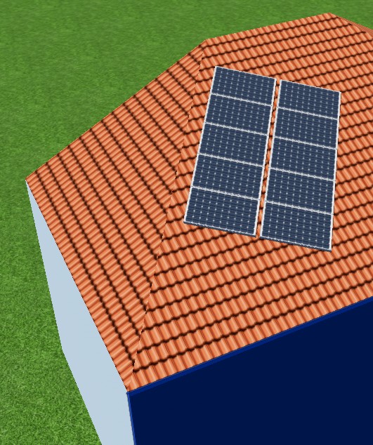 Quando nós colocamos módulos em cima do telhado, usando a função Cobertura com módulos, então o PV*SOL escolhe a borda de referência por conta própria e alinha os módulos com ela. Normalmente, é a linha mais baixa do telhado.