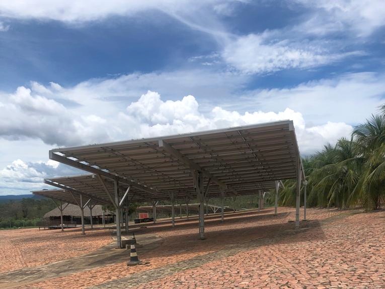 O complexo turístico de Pedra Caída, no Maranhão, contava com um belo estacionamento solar. Sombra para os turistas e energia para o local, a combinação perfeita.