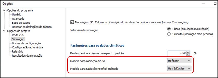 - Os dados devem ser do plano horizontal! O PV*SOL calcula a irradiação para o(s) plano(s) inclinados dos módulos;