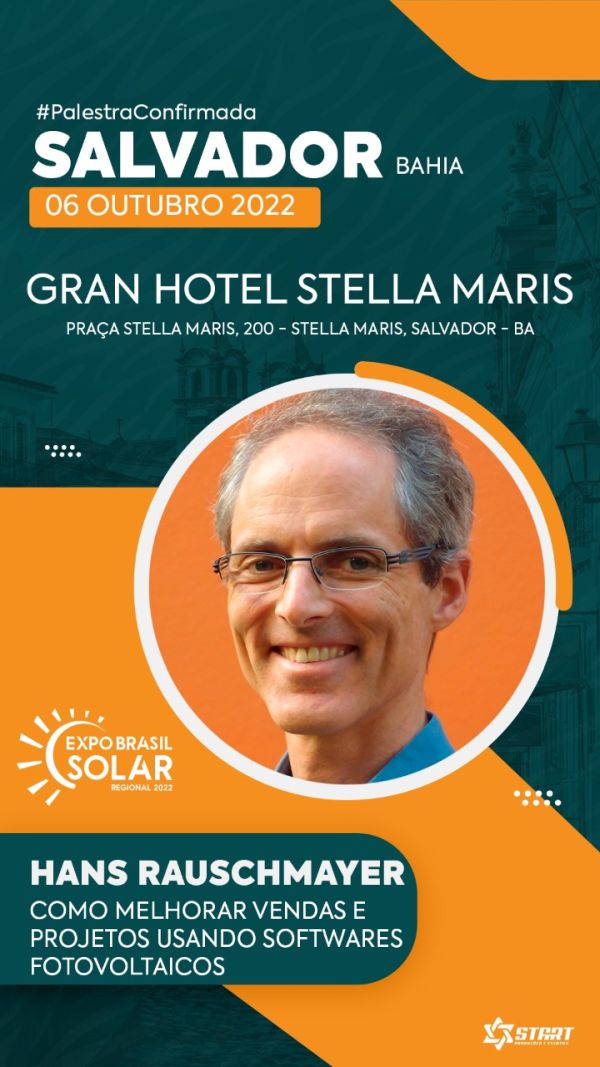 A Solarize confirmou sua palestra na Expo Brasil Solar 2022 em Salvador-BA, com o tema "Como melhorar vendas e projetos usando softwares fotovoltaicos".