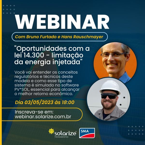 Recebemos o especialista Bruno Furtado, engenheiro de aplicação e gerente de projetos na SMA, que debaterá o tema junto com Hans Rauschmayer, sócio-gerente da Solarize.