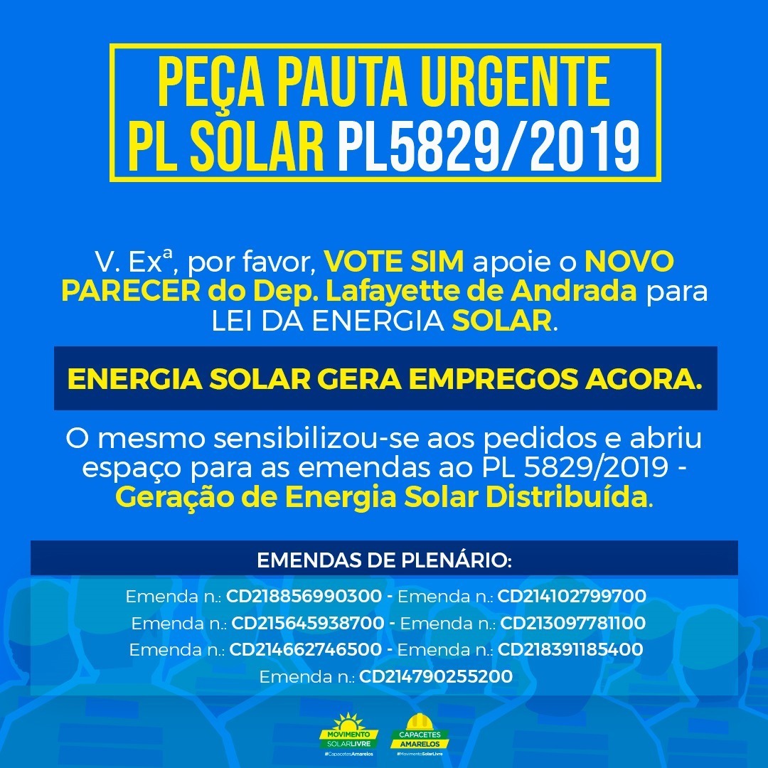 A nova lei sobre Geração Distribuída entrou na pauta do congresso, mas não chegou a ser votada, diante da urgência da PEC emergencial. A expectativa é que volte nesta semana.